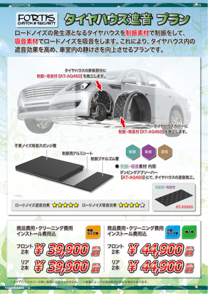 FORTISオリジナルタイヤハウス遮音プラン 今回の施工ヴェルファイアには+アンダーコートスプレーを施しています