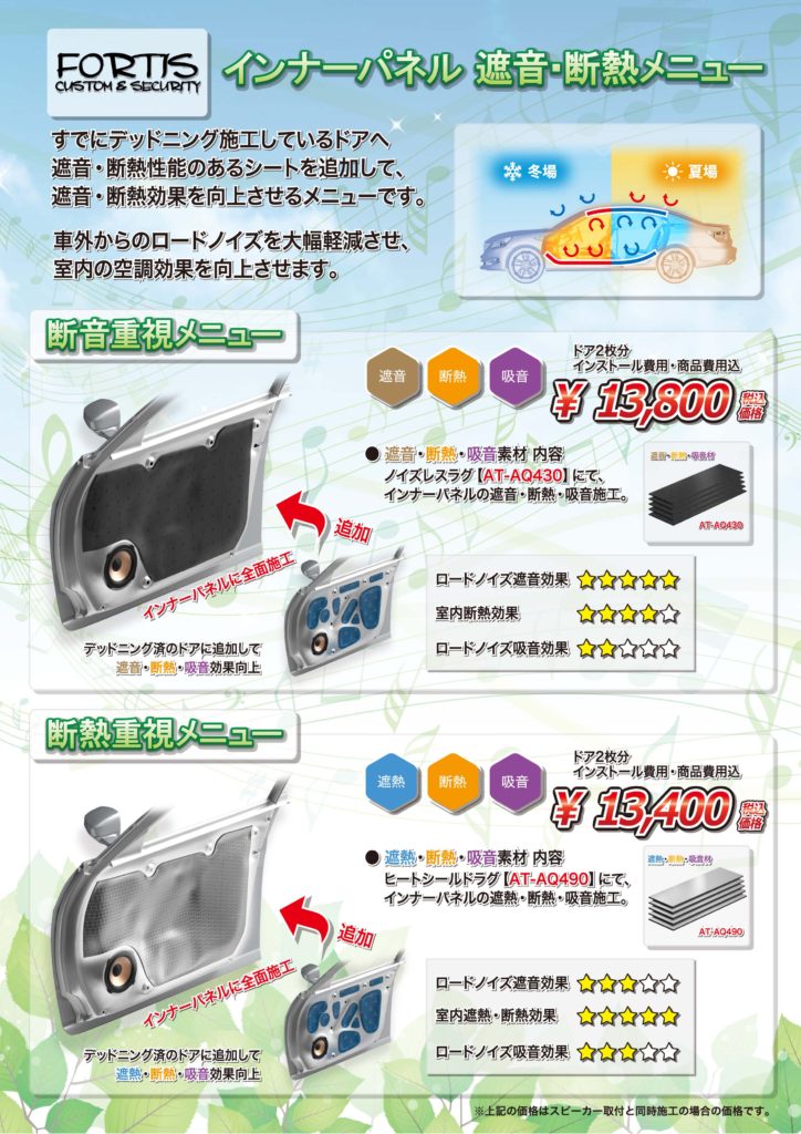 インナーパネル 遮音重視メニュー