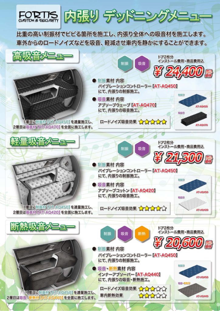 内張り デットニング 今回は、軽量吸音メニュー