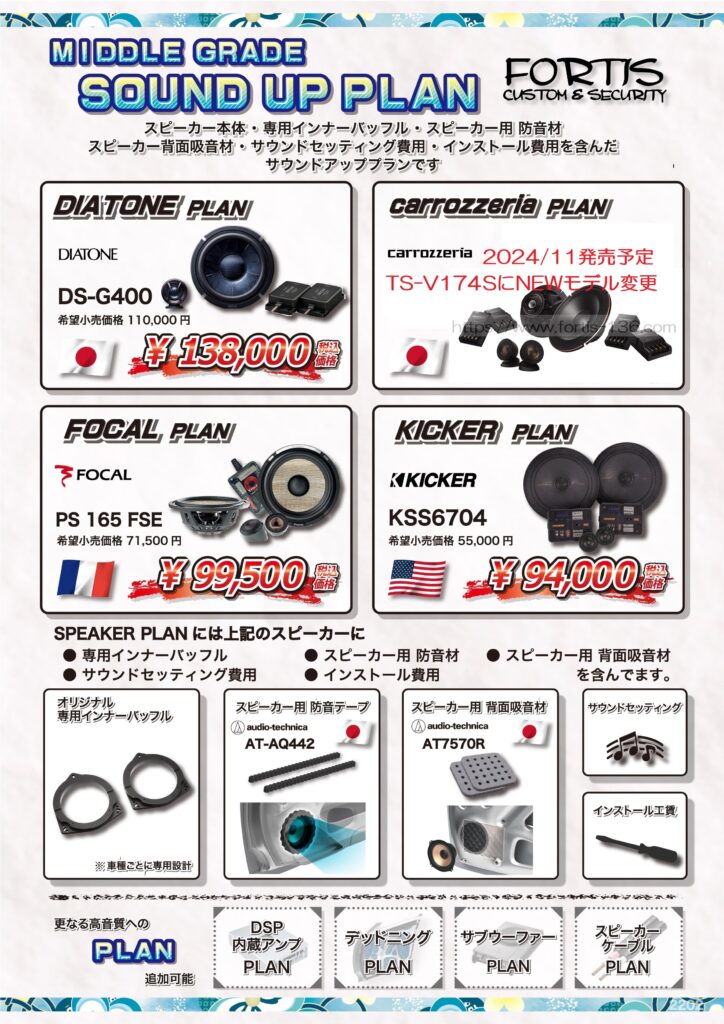 2024/11月モデルに伴いスピーカー本体価格も変更となる為、サウンドアッププランの価格も11月(予定)変更になります