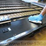 溶剤がまんべんなく、そして密着するよう下処理を手作業及び下処理スプレーを使用
